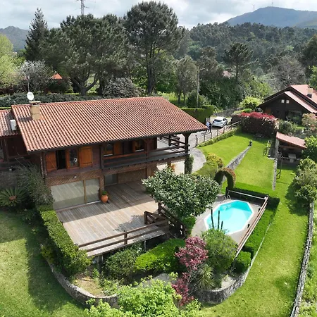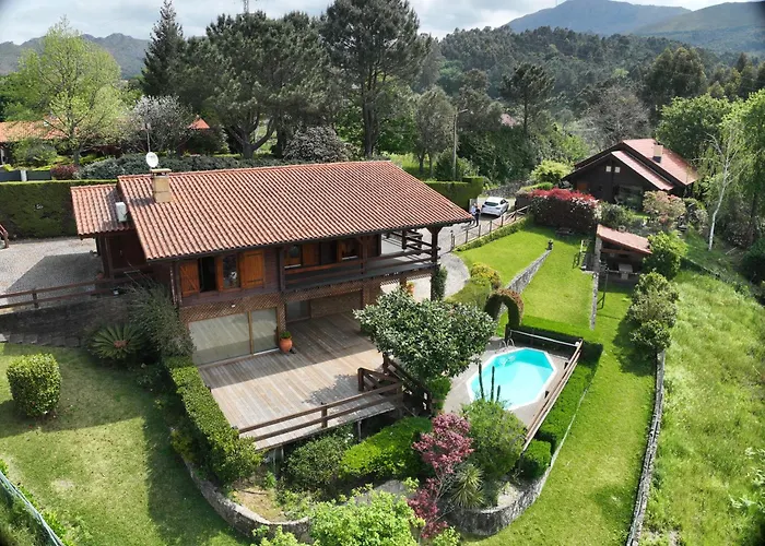 Η Chale Do Pinheiro Βίλα Vila Nova de Cerveira διαθέτει εσωτερική αυλή με θέα στο βουνό, καθώς και έχει πισίνα.